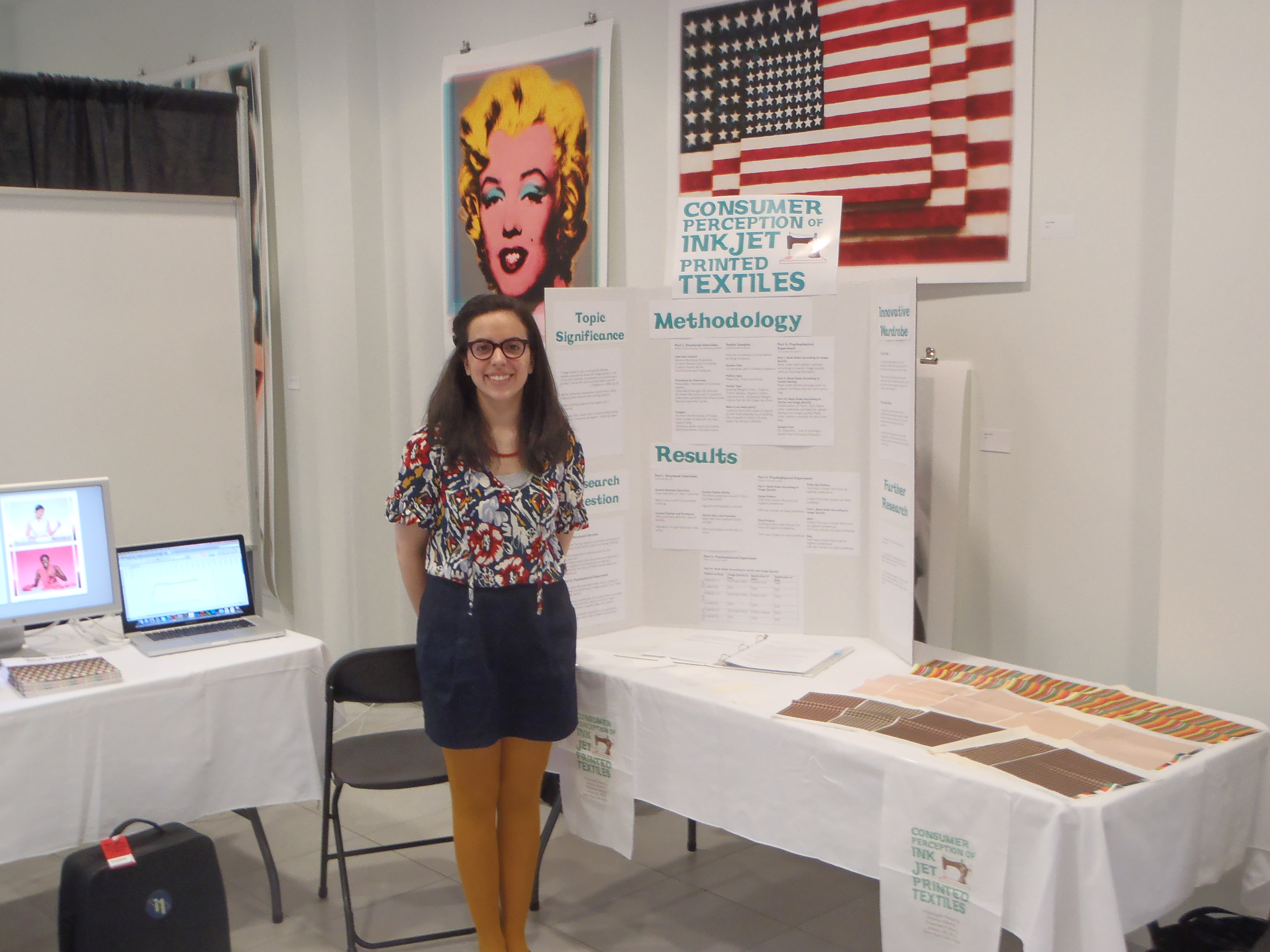 Carlos Carzo and Vickrant Zunjarrao showcased their work regarding optical agents in papers and color reproduction when printed and viewed digitally. Both students were lead by Professor Robert Chung, the school’s gravure research professor. Also exhibiting research was me! I showcased my recently completed master’s thesis dealing with consumer perception of inkjet printed textiles. All students were able to meet alumni, fellow researchers within RIT, and the general public to discuss their work and showcase the innovation the School of Print Media has to offer. The event concluded with an evening reception, which included a keynote address by Lorraine Justice, the Dean of RIT’s College of Imaging Arts and Sciences.